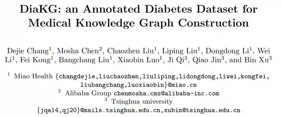 为了加速医学领域知识的研究,精准化健康管理平台妙健康联合阿里云天池平台、 清华大学合作提出了一个高质量的中文糖尿病知识图谱数据集DiaKG,该数据集共包含22050个实体和6890个关系,目前是中文领域首个糖尿病相关的标注数据集。