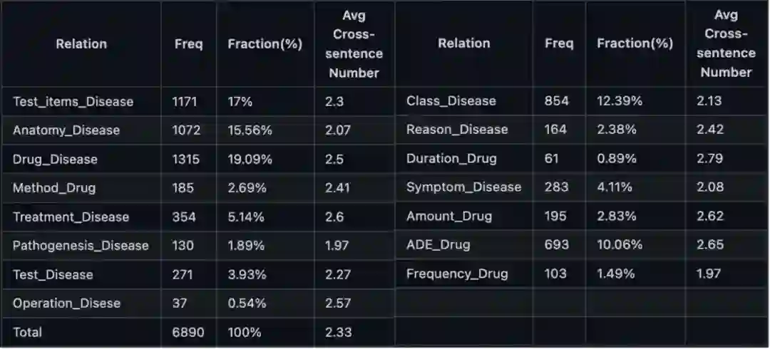 注:Avg Cross-sentence Number表示组成关系的头、尾实体所分布句子的跨句长度。