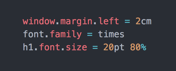 在第一稿建议中,有一个影响百分比的说明符:h1.font.size = 20pt 80%。