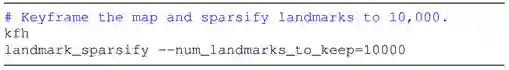 基于特征的大型模型,可能在构建多个场景中,很容易包含数千个路标并达到相当大的存储空间。然而,并不完全需要的保留所有的路标以保证ROVIOLI的良好的定位质量。Maplab提供了基于[11]的地图汇总功能,该功能使用基于整数(integer-based)的优化来执行路标选择。该算法试图去除最不常见的地标,但与此同时保持对环境的均衡覆盖(balanced coverage)。Maplab还包括一个关键帧算法,用于去除多余的顶点,只保留一个有效而准确的状态估计所需的顶点算法。通过去除顶点,我们也消除了许多顶点路标相关联的含有一定尺寸的描述子。汇总(summarization)和关键帧都可以显著降低模型尺寸,而不会在位姿估计质量方面造成大的损失。