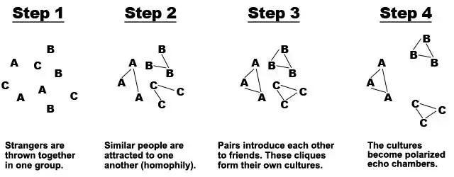 每个群体都生活在自己的回声室中,他们认为这就是“真实”的世界,他们通过妖魔化其他群体来维护这种信念。