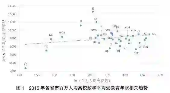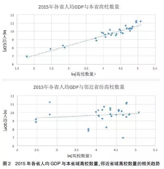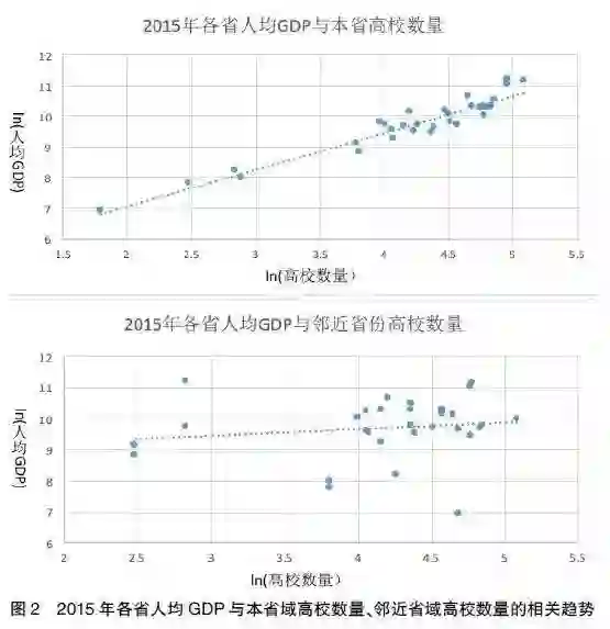 分析发现,国内学者对高等教育对经济增长作用的研究存以下不足:一是从对经济增长促进作用的范围上讲,大多数研究集中于对本省或全国经济增长的直接作用,研究高等教育对经济增长的空间溢出效应的较少;二是从对经济增长促进的作用指标上讲,国内学者主要是追随人力资本理论的框架,运用道格拉斯生产函数和人力资本的主要特征指标(平均受教育年限、高等教育规模等)来分析,并未针对高校数量规模的作用对经济增长的作用进行分析;三是对全国总体层面分析较多,没有对区域差异进行探讨。因此,本研究基于1987—2015年间31个省市的面板数据,借助固定效应模型分析我国高校数量规模变化及其对经济发展的空间溢出效应。