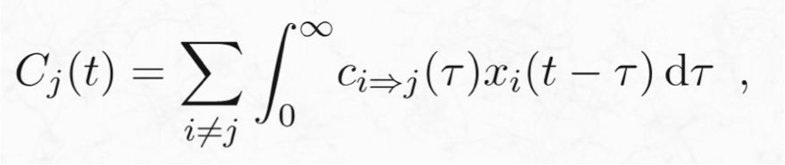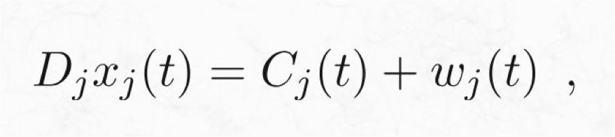 其中,D_j 是微分算子(即其描述了直到第 p 个导数的动态),w_j(t) 仍然是指「创新量(innovation)」或「冲击量(shock)」项,关键的 C_j(t) 是来自其它变量 i≠j 的因果效应的总和。
