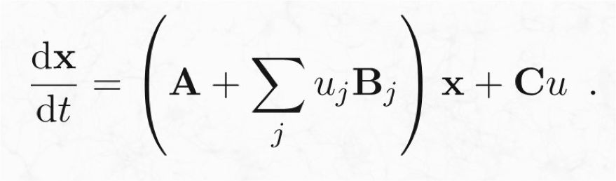 注意,其中 X=(x_1, ..., x_n)。此外,A 是一个包含 x 中变量之间固定交互的矩阵。其作用类似于 VAR 模型的自回归系数,但 DCM 中没有建模延后量。实际上,其动态所受的影响是即时的。另外的 B 和 C 项表示(节点特定的)外源输入 μ,我们这里不会对此详做讨论,因为 GP CaKe [4] 中(尚)没有与这些项类同的地方。