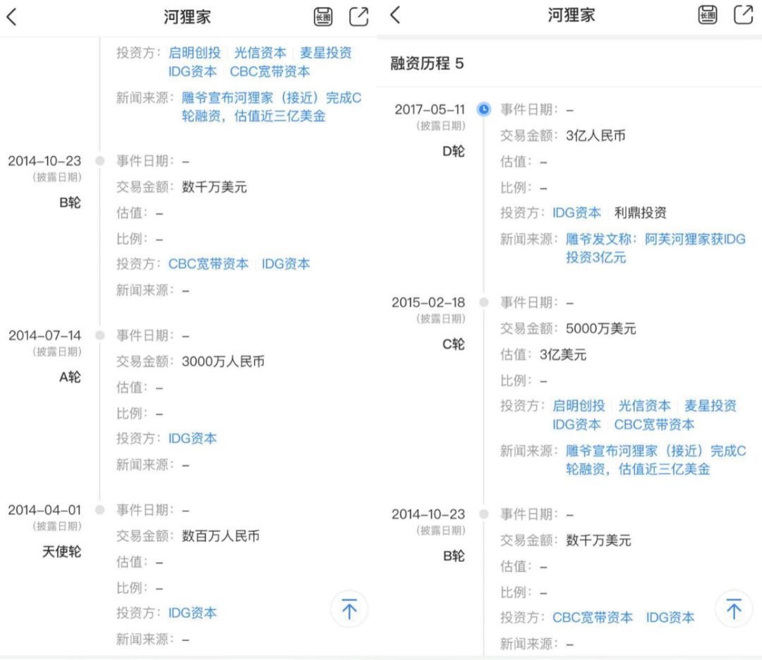 河狸家是雕爷拿融资最多的一个项目,成立半年时估值达到10亿元,迄今完成五轮融资,其中IDG从天使轮起每一轮都追投,但融资时间集中在O2O最火的2014年和2015年。