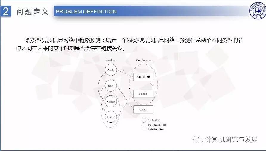 链路预测是数据挖掘研究的主要问题之一.由于网络的复杂性、数据的多样性,根据网络结构及已有信息对异质网络中的不同类型的数据进行链路预测的问题也变得更加复杂.