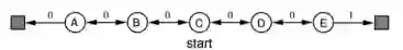 状态空间:如下图:A、B、C、D、E为中间状态,C同时作为起始状态。灰色方格表示终止状态;