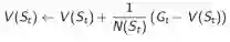 这个公式比较简单。把这个方法应用于蒙特卡洛策略评估,就得到下面的蒙特卡洛累进更新。