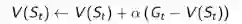 把刚才的描述体现在公式里更新状态价值,是这样的: