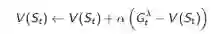 这里我们引入了一个新的参数:λ。通过引入这个新的参数,可以做到在不增加计算复杂度的情况下综合考虑所有步数的预测。这就是λ预测和λ收获。