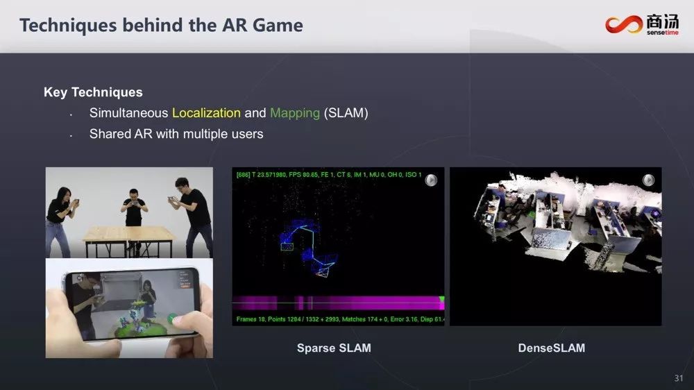 作为AR中的关键技术,商汤在SLAM上也投入了大量的资源,而且与当前的传统方案相比,不仅效率更高,而且也更加稳定。他也给出了相应的数据,在支撑多人AR游戏的时候,定位时间少于1秒。