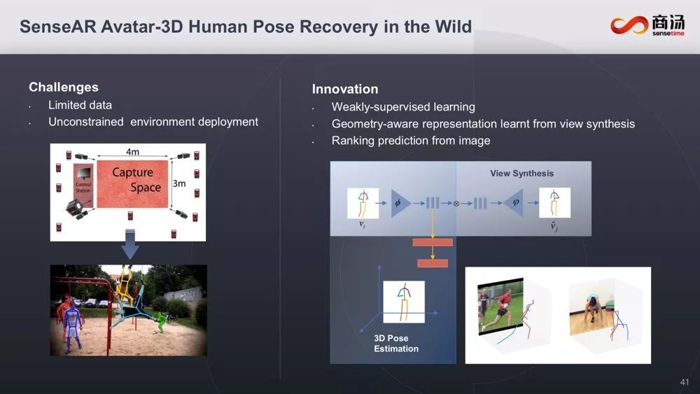 汤教授介绍,借助弱监督学习、基于视图合成的几何感知表示、基于图像的排序预测等技术,可以有效地完成动作捕捉、3D动作恢复以及动作传递。