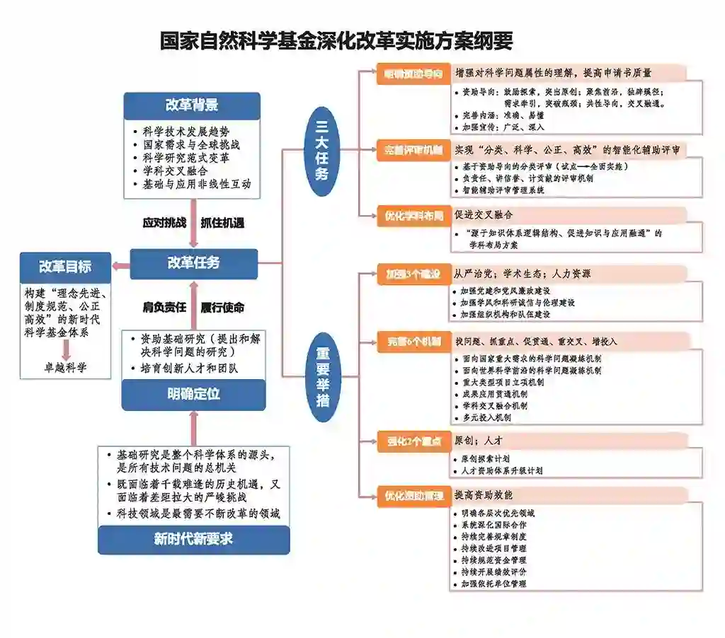 国家自然科学基金委员会(以下简称自然科学基金委)自2018年以来,根据党中央、国务院决策部署,不断深化科学基金改革,形成以明确资助导向、完善评审机制、优化学科布局为核心,以“加强三个建设、完善六个机制、强化两个重点、优化七方面资助管理"为重要举措的系统性改革方案。目前科学基金深化改革进展顺利,部分重点改革任务取得阶段性成效。“十四五”时期,我们将在总结改革试点经验的基础上,稳步推进深化改革,充分发挥科学基金在国家创新体系中的独特作用,夯实科技自立自强的根基。