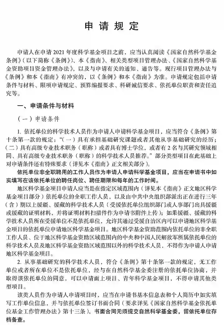 【导读】国家自然科学基金委员会在其官网上发布了2021年项目指南,内容科学基金最新改革举措、申请规定、资助政策、资助领域和方向等。《指南》对各类项目的定位、申请条件和相关要求分别进行了介绍与说明,是国家自然科学基金资助工作的重要依据,也是国家自然科学基金申请人必读的参考文献。