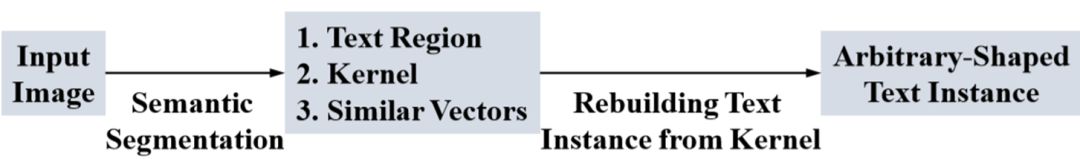 其中,文本区域是为了描述文本的完整形状,文本核参数为了区分不同的文本,预测每个像素的相似向量也是为了保证同一文本像素的相似向量和文本核距离够小。