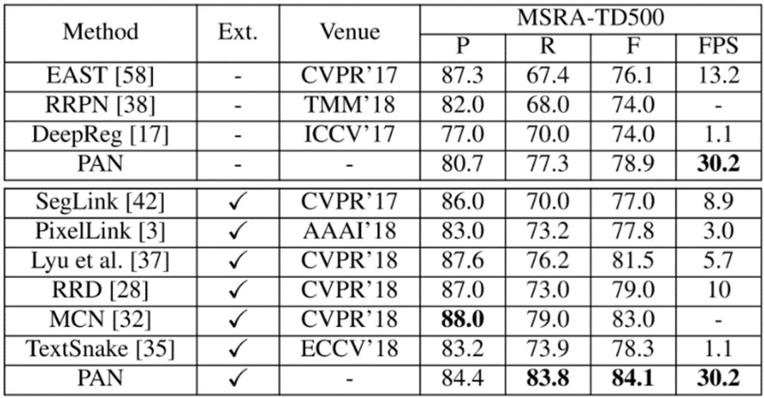 [1] Wenhai Wang , Enze Xie and Xiaoge Song.Efficient and AccurateArbitrary-Shaped Text Detection with Pixel Aggregation Network. In ICCV, 2019.