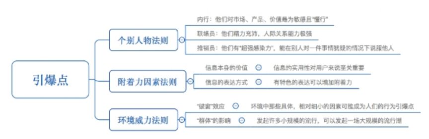 引爆点理论由美国的格拉德威尔提出,该理论包括三部分: