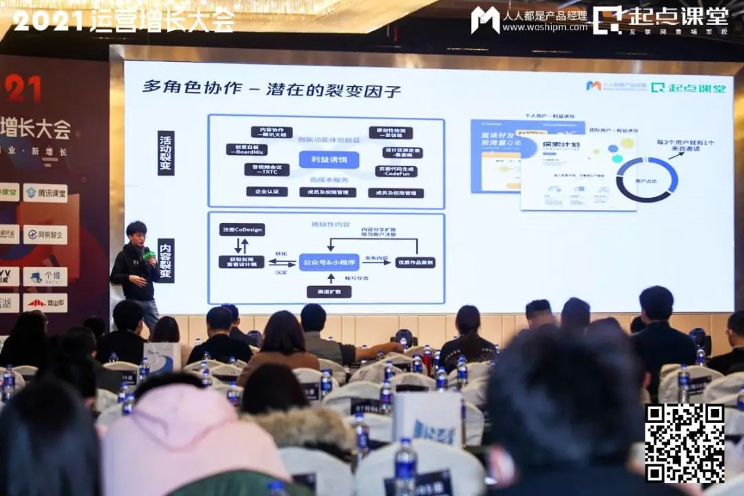 第二位分享嘉宾是腾讯CoDesign产品运营负责人黄愈,他分享的主题是《流量稀缺,协作工具产品如何实现用户增长》。