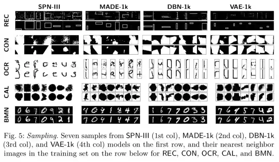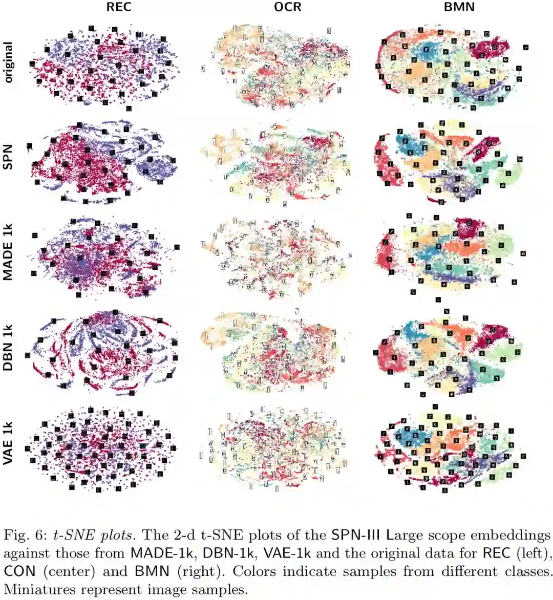 s (VAEs) [19] are generative autoencoders, but differently from MADEs they are tailored towards compressing and learning untangled representations of the data through a variational approach to Bayesian inference. While VAEs have recently gained momentum as generative models, their inference capabilities, contrary to SPNs, are limited and restricted to Monte Carlo estimates relying on the generated samples. W.r.t. all the above mentioned neural models, one can learn one SPN structure from data and obtain a highly versatile probabilistic model capable of performing a wide variety of inference queries efficiently and at the same time providing very informative feature representations, as we will see in the following sections.