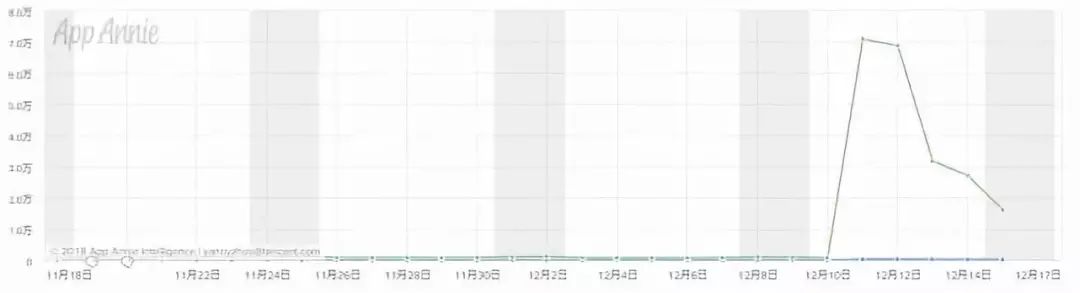 在短短几天内,下载量直线上升。到12月11日,该应用的单日下载量达到了70480,蹿至美国区社交榜单的第一位。然而在一周后,Walkie-Talkie又下跌到了榜单二十名之外,短短几天,便经历了“走上巅峰”到“跌落神坛”。