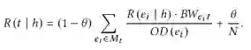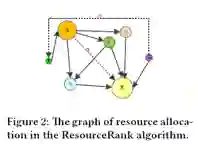 其中,M_t 是所有通向节点 t 的节点集合,OD(e_i) 是节点 e_i 的出度,BW(e_it)是从节点到节点 t 带宽。因此对于 M_t 中个每个节点 e_i,从节点 e_i 到节点 t 转移的资源量为。因为知识图谱中可能存在的错误和噪声,构造的有向图并不完美并且可能存在影响资源流动的闭合回路。因此为了提高模型的容错率,假设每个节点的资源流都有相同概率θ可以直接跳转到的随机节点,并且随机流向t的这部分资源是 1/N,其中 N 是节点总个数。