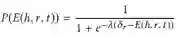 其中,δr是与关系r相关的阈值。当E(h, r, t) =δr的时候,概率值P为0.5。λ是用于平滑处理的超参数,可以随模型训练进行动态调整。
