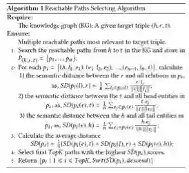 可达路径的可靠性需要考虑到路径与目标三元组的语义相关性的因素,因此本文针对这部分提出了一种基于语义距离的路径选择算法: