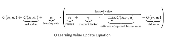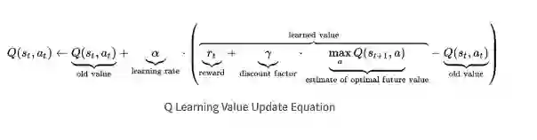 作为参考,Q学习是一种无模型的强化学习算法。它可用于求解有限马尔可夫决策过程的最优行为选择策略。在程序初始化时,每个动作值对的Q值由开发者定义,并在每一步中由RL算法更新。下图是更新Q动作值对的示例。