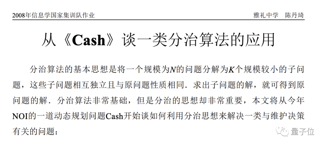 奥赛圈耳熟能详闻的“CDQ分治算法”就是这位学霸在集训期间提出来的,并以她的名字命名。
