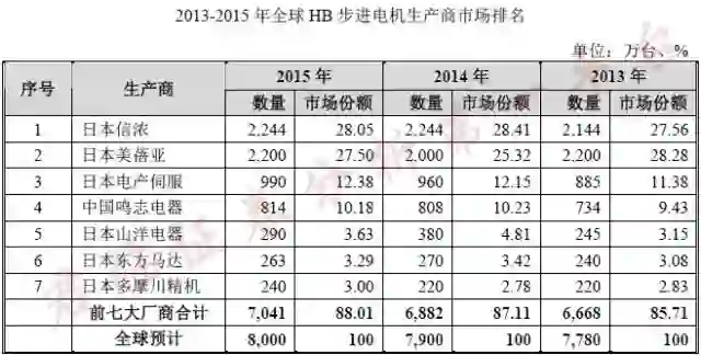 看看最新的HB步进电机的全球市场排行,是不是全部带“日”字开头的?