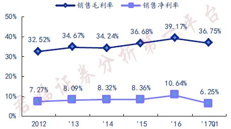 高技术含量业务让鸣志电器近几年的毛利率一直保持在36%以上,逐年稳定增长。