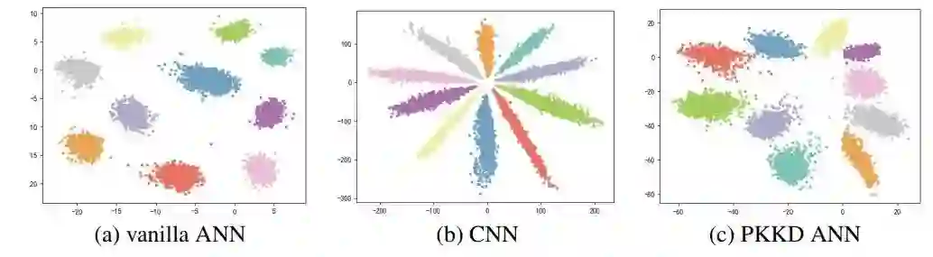 只包含加法操作的加法神经网络 (ANN)为开发低能耗的深层神经网络提供了一种新的途径。但是,当用加法滤波器替换原始的卷积滤波器时会带来精度下降。其主要原因是采用L1-范数进行神经网络优化比较困难。在这种情况下,反向传播的梯度通常会估计不准确。本文提出一种在不增加可训练参数的前提下,通过基于核的渐进式知识蒸馏(PKKD)方法进一步提高ANN的性能。我们将与ANN具有相同结构的卷积神经网络(CNN)进行随机初始化并作为教师网络,将ANN和CNN的特征和权重通过核变换映射到一个新的空间,减少了分布之间的差异,从而消除了精度下降问题。最后,ANN通过渐进的方法同时学习标签和教师网络的知识。该方法在几个标准数据集上得到了很好的验证,从而有效地学习了具有较高性能的ANN。例如,使用所提出的PKKD方法训练的ANN-50在ImageNet数据集上获得76.8%的精度,比相同结构的ResNet-50高0.6%。
