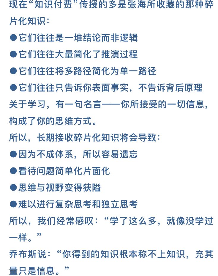 这些知识服务者知识把知识讲给你听,并没有告诉你他们的思考过程,但知识是需要累积和思考的,别人并不能替代你思考。