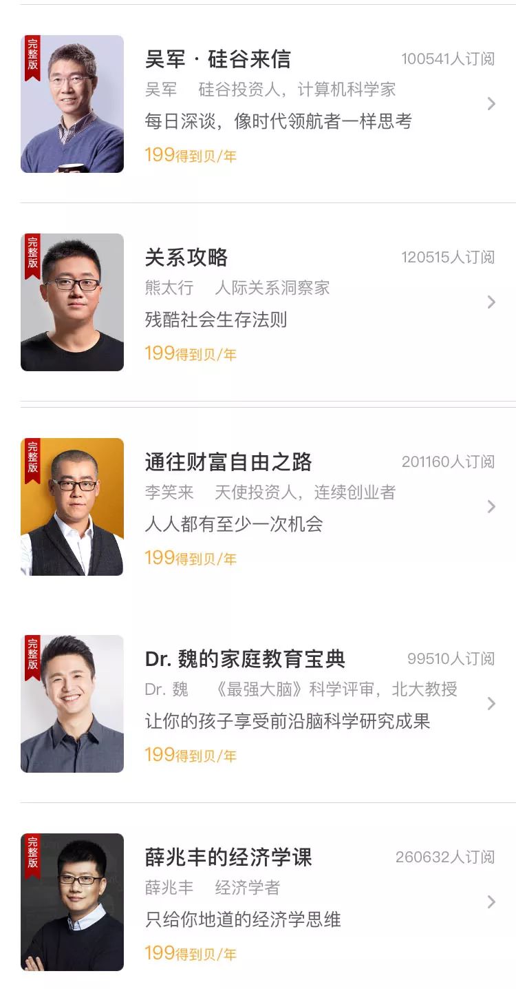“得到”筛选各行业知识性人才,包装他们个人及内容,