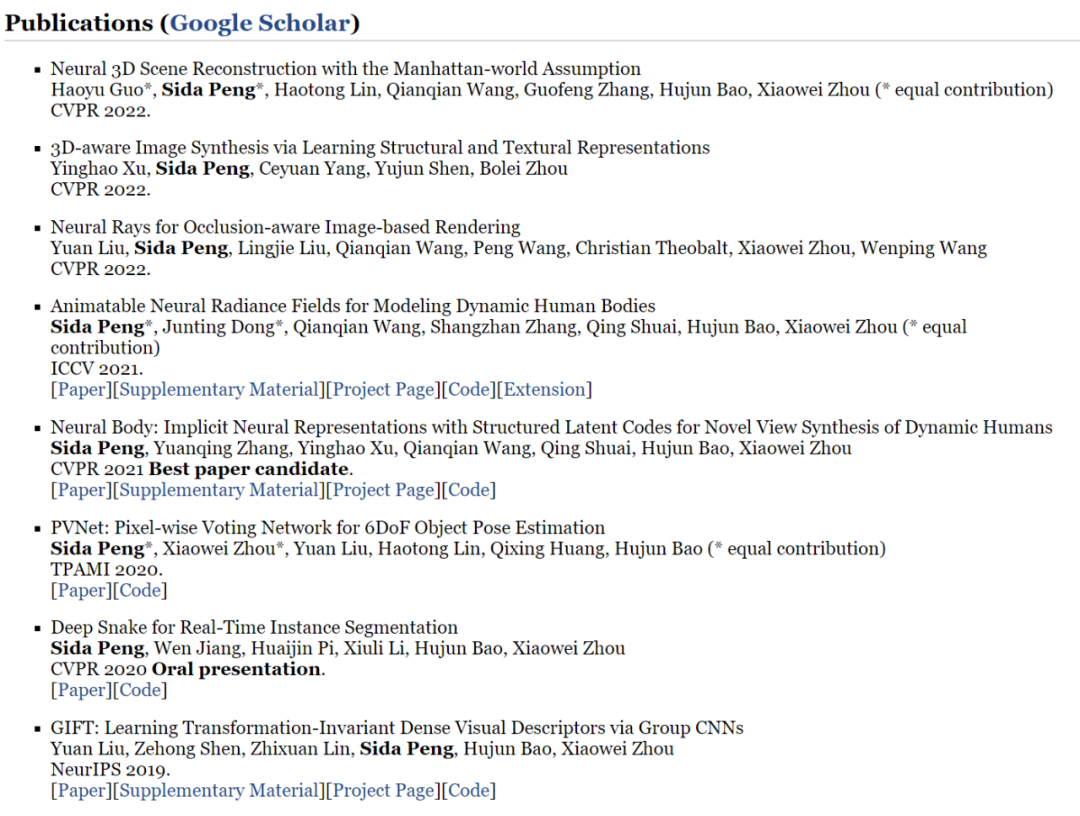 彭思达是浙江大学计算机科学专业的博士生,师从周晓巍教授。他于 2018 年获得浙江大学信息工程学士学位,当前的研究重点是重建和物体姿态估计,已有多篇论文入选 CVPR、ICCV 等顶会。