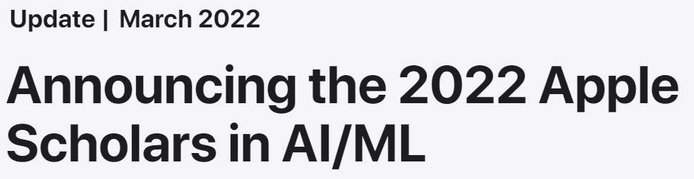 苹果博士奖学金旨在奖励和支持计算机科学与工程领域极具潜力的博士研究生开展研究,每年颁发一次。获奖者不仅可以获得奖学金支持,还能得到苹果实习机会和苹果研究员的学术指导。近日,苹果宣布了 2022 年人工智能或机器学习领域的博士生奖学金名单。