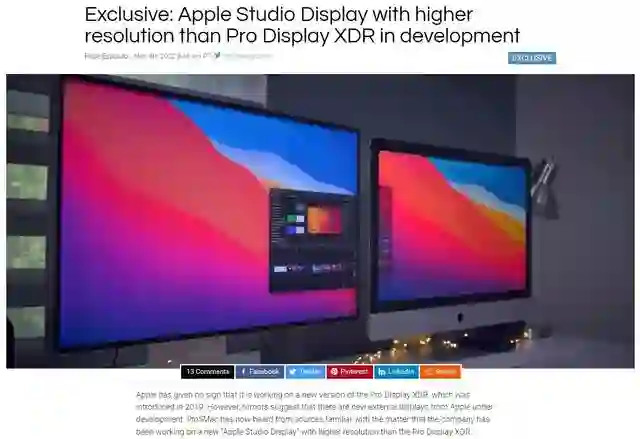 彭博社 Mark Gurman 最近报道称,苹果计划在 2022 年推出多款新 Mac,以及一款新的外部显示器,其价格是针对普通用户的 Pro Display XDR 的一半。过去,苹果的"Cinema Display"系列有多种尺寸可供选择。因此,如果该公司再次为其客户提供两种或更多种显示选项,那也就不足为奇了。