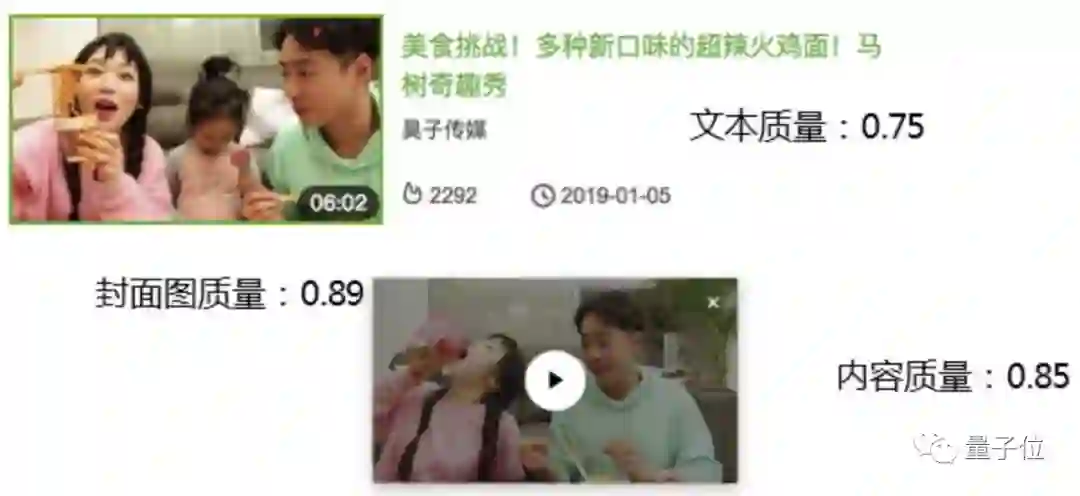 还有一些视频网站的智能化推荐,也是通过分析视频封面、视频抽帧和文本几个模态的信息对视频质量进行评估: