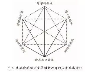 基于跨界知识的创新教育模式,可以让学生学会用跨界的视角观察问题,用跨界的思维分析问题,用跨界的范式解决问题,用跨界的语言表达问题。实现跨界知识创新要重视整体协同,不仅要提供跨界知识的动态生长环境,更要全面开展各种层次的基于跨界知识的创新教育活动。