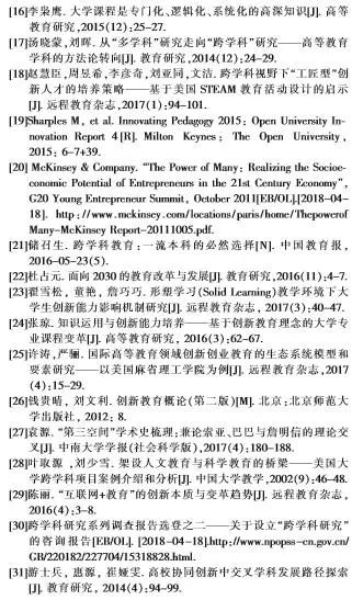 以跨界知识的场域边界作为创新教育的环境,以跨界知识的处理加工作为创新教育的方法,是跨界知识变革高校创新教育的基本模式。《中国教育现代化2030》明确指出,“确保所有学习者掌握促进可持续发展所需知识和技能……开展可持续发展的教育”[22]。近年来,世界一流大学均致力于提升学生可持续发展的创新能力。例如,麻省理工学院以卓越企业家的综合发展精神为教育理念,强调将跨界实践融入课程设置,仅在2016〜2017学年,就开设了60余门创新课程。麻省理工学院在这方面的探索涉及到诸多领域的知识融合,无论是跨界知识的生产规模,还是跨界交叉的程度,都值得我们借鉴。