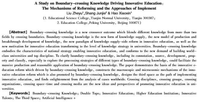 关键词:跨界知识;双一流;创新教育;高等学校;创新人才;第三空间;人工智能+
