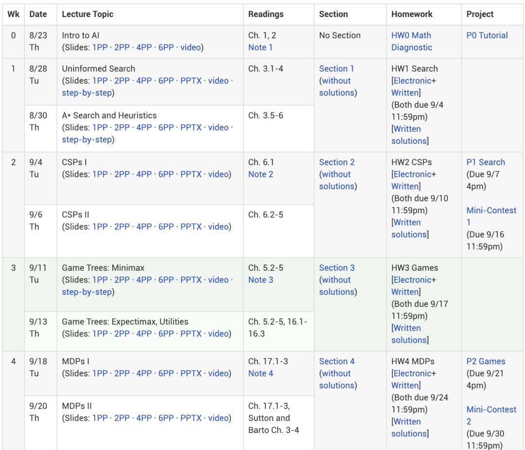 课件地址:https://inst.eecs.berkeley.edu/~cs188/fa18/index.html