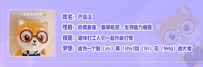 这是一只专属产品经理的萌宠公仔,陪伴我们走过了三年多的美好岁月,希望在新的一年里,产品汪可以继续陪你学习成长,打怪升级!