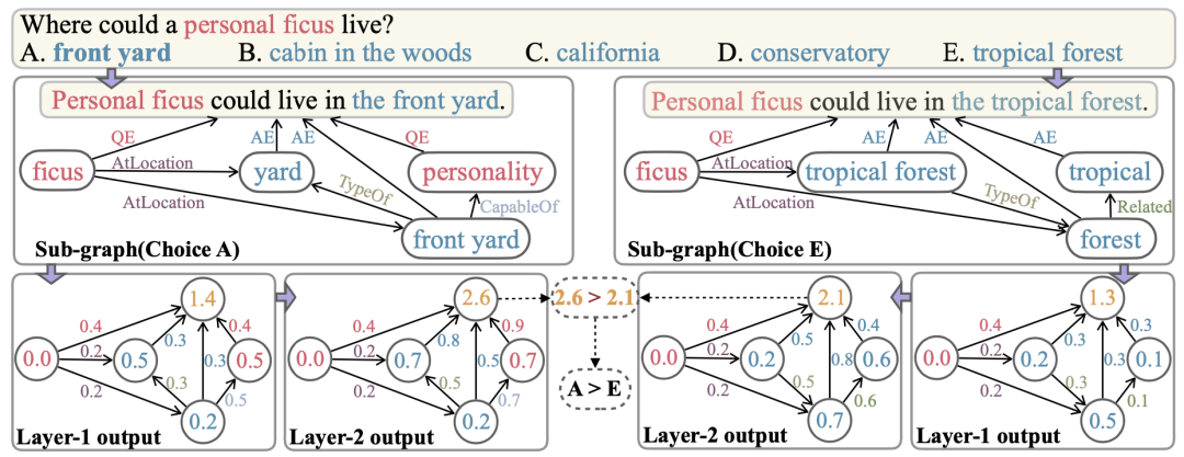 看起来建图是有用的,可接下来,为啥一定要用 GNN 呢?最近的文章里,人们都说 GNN 有“推理能力”,即 GNN 在图上的信息传播过程相当于在图上找路径,这些路径可以解释答案得到的推理步骤。