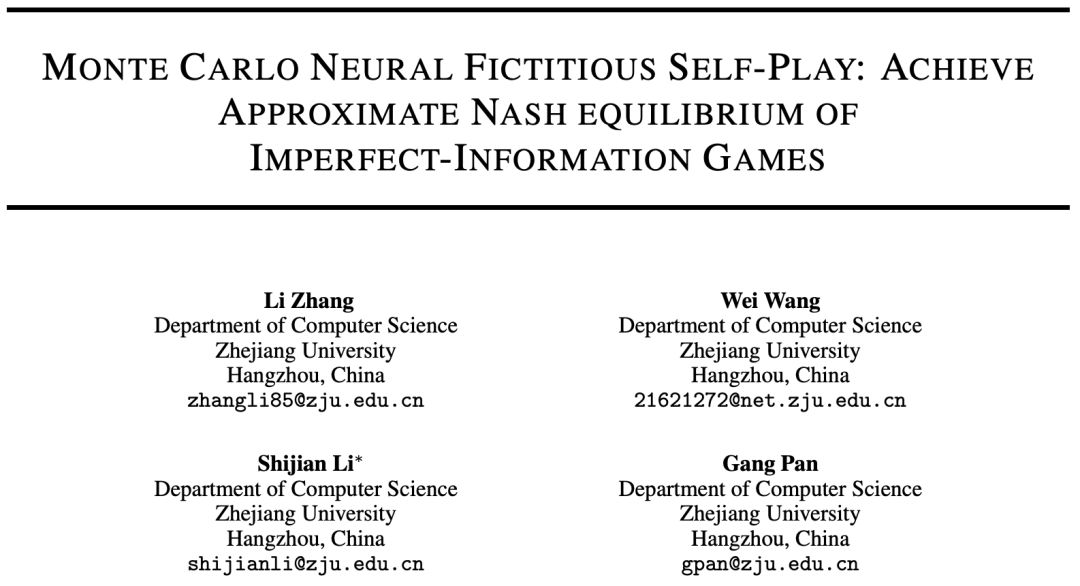 论文:Monte Carlo Neural Fictitious Self-Play: Achieve Approximate Nash equilibrium of Imperfect-Information Games