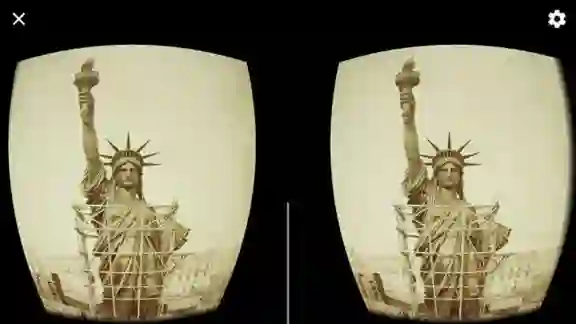 。裸眼看“自由女神像的建成”,左右移动手机就可以 360 度全景移动,每个片段都依次展示了自由女神像的建筑瞬间,这种震撼感是图片给不了的。