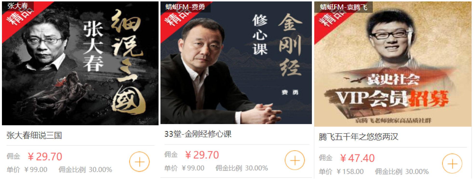 关于付费内容分销:新榜付费内容分销以选取优质、符合自媒体传播调性的内容为目标,服务内容生产方和自媒体两端。目前新榜分销平台合作方众多,包含蜻蜓FM、小鹅通、网易云阅读、荔枝微课、一块听听等主流内容付费平台,产品包括知识付费产品,如音频、视频课程,专栏、小说。自媒体分成比例可观,普遍介于30%-55%。