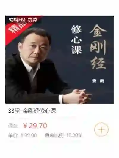 课程特色:33期音频+33节精美课堂笔记,《不焦虑的活法:金刚经修心课》作者费勇主讲,对粉丝群自带吸引力。
