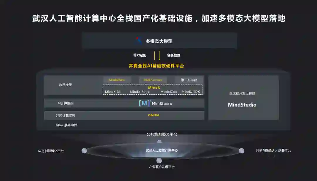 首先,这主要得益于非常强大的基础研究能力。通过多模态实现更加强大的人工智能一直是我们的梦想。从去年开始,在各研究团队单模态大模型取得阶段性成果的基础上,我们组织所内优势力量联合投入开始多模态攻关。第二,我们以中国自主的昇腾人工智能基础软硬件平台为基础,运用包括昇腾芯片和全场景人工智能计算框架MindSpore来打造多模态通用人工智能平台,通过对外交流合作大大加速了这个过程。目前平台具备了三大关键技术(多模态理解与生成的多任务统一建模、面向国产化软硬件的高效训练与部署、多模态预训练模型架构设计与优化),和六项核心能力(多模态统一表示与语义关联、跨模态内容转化与生成、预训练模型网络架构设计、标注受限自监督模型学习、模型适配与分布式训练、模型轻量化与推理加速)。