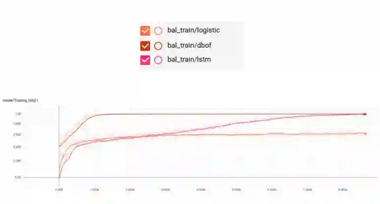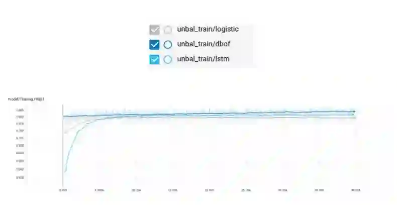 这里是具有细节描述的 YouTube-8M 模型完整列表(https://github.com/google/youtube-8m#overview-of-models)。因为我们的训练数据是帧格式的,所以必须使用帧级别的模型。Google AudioSet 数据集为我们提供的数据被分成了三部分:均衡的训练集、不均衡的训练集以及评估集。